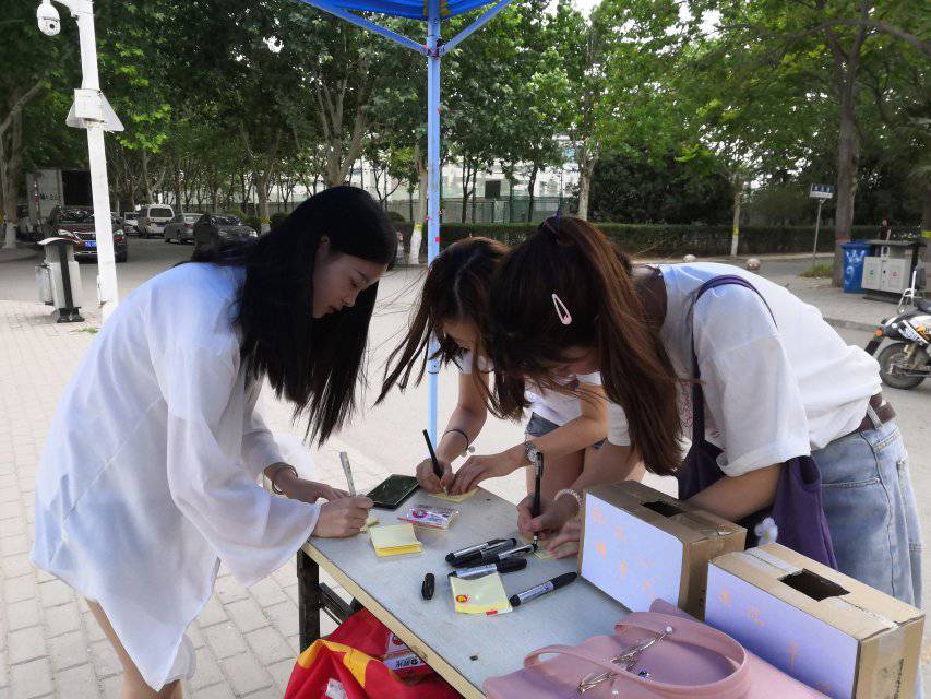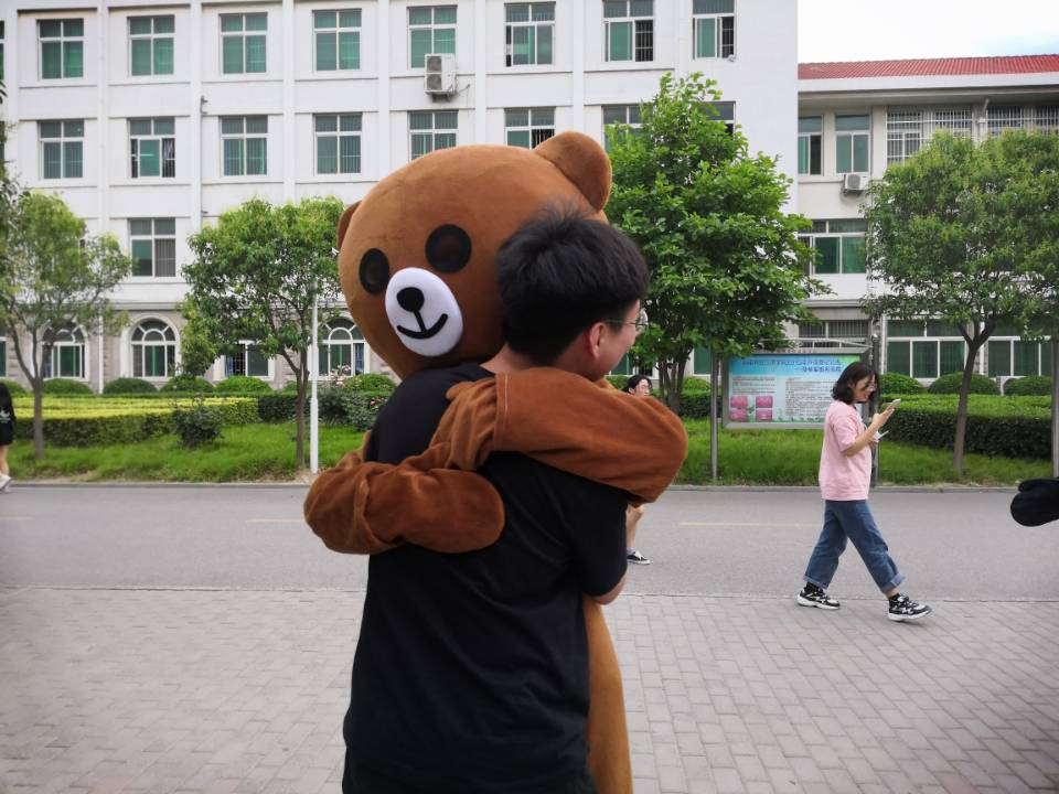随着学习、生活等各方面压力不断增加,心理健康问题在大学生中逐渐突出,已经成为大学生活中不可忽视的一部分。活动期间,心教部的两名干事身着人偶服装,给路过帐篷的同学送去拥抱、合影留念。当人偶对路过的学生张开双臂时,一些同学是略微迟疑的,但是却没有任何一位同学去拒绝这个拥抱。人类之间最好的身体接触方式就是拥抱,因为它简单又明确地表达着人与人之间最真的关爱。拥抱也会帮助人消除沮丧,让人增强勇气,给人带来温暖。同时,心教部的干事们邀请路过的同学们在精心准备的展板上写下自己对朋友、家人的感恩与祝福,写下自己的心声或者大学四年的心愿、对未来的展望。同学们通过相互拥抱和书写祝福语表达了对周围人的善意和对生活积极乐观的态度,他们每个人的脸上都洋溢着快乐。