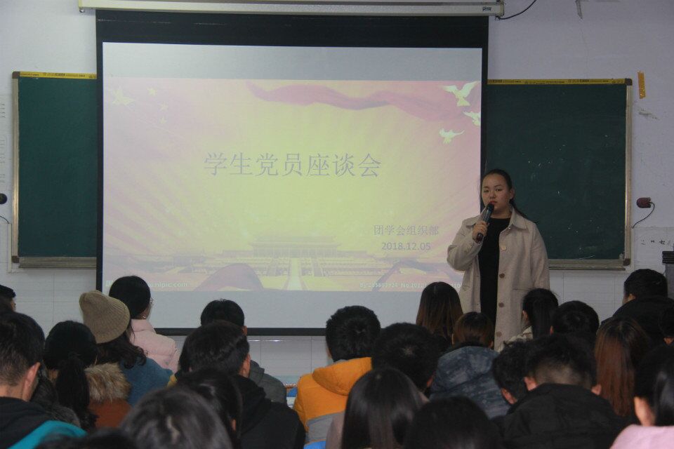 12月5日晚7时,77779193永利官网在E 202成功举办了学生党员座谈会,我院全体学生党员参加了此次会议。首先,学生党员在会议上依次汇报自己的工作、思想和学习情况,并与学生干部集中分析各自班级学生的文明礼仪与行为规范,学风学纪现状,发掘各类典型,寻找完善管理的方式。学生党员们表示作为新时代的新青年,要坚定理想信念,树立正确的价值观,从身边的小事做起,充分发挥学生党员的先锋模范作用,思想上要先人一步,行动上奋勇争先,要更加严格的要求自己,坚定政治信仰,加强组织观念,提高自身修养,积极履行党员的责任和义务,忠于职守,努力工作,树立起“党员”这面旗帜,用朝气去迎接更加辉煌的明天,为创建和谐校园贡献自己的一份力量。最后,在一片热烈掌声中,学生党员座谈会圆满结束。