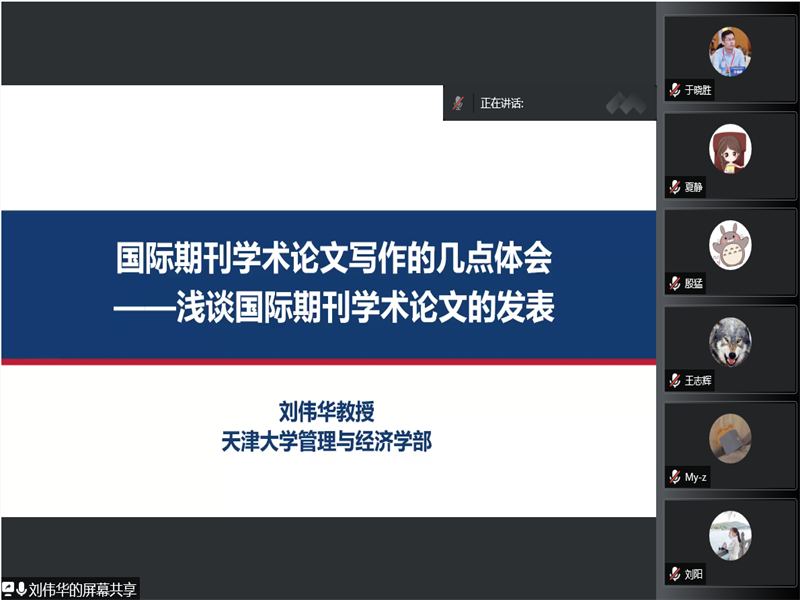 2022年6月21日,来自天津大学运营与供应链管理系的系主任刘伟华教授,应77779193永利官网邀请,利用腾讯会议平台开讲“国际期刊学术论文写作的几点体会”,77779193永利官网全体教师及学校经管学科的相关老师们认真听取了本次报告会,本次报告由77779193永利官网党委书记于晓胜博士主持。