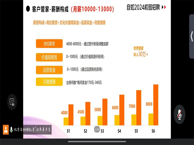 会议开始之前,李红彦女士事先在微信招聘群里询问了同学们对未来就业的憧憬以及理想的福利待遇都是什么样的,同学们纷纷作答,而李女士也以此作为会议的前引,从而引入正题。会议正式开始,李女士向大家介绍了公司的基本情况:自如集团成立于2011年10月18日,是一家提供高品质居住产品与生活服务的科技公司,所属长租行业,她表明长租行业未来发展前景广阔,未来所占比重也会有所增加。该公司与中介的区别是该公司是做分散式居住产品,生活服务产品,以及集中式服务产品,注重打造年轻化,多元化的租住产品的公司,产品通过自如APP展示,客户订购签约,公司不仅提供租住服务,还提供相关配套服务,与中介有着根本区别。介绍完该公司的基本概况之后,李女士介绍到此次招聘的主要岗位是客户管家和收房管家。这两个岗位的基本要求是要有礼貌,其次是沟通谈判能力强,招聘不限专业和不受经验限制。紧接着李女士介绍了该公司的员工福利情况:提供六险一金,具有租房福利,还可举办生日会以及分发节假日礼包等等。她表示加入公司将会有更多的福利待遇等待大家。最后,李女士一一解答了同学们提出的疑问并期待同学们加入自如大家庭。