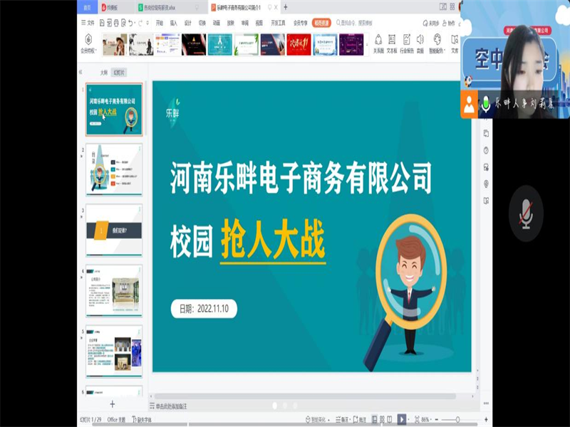 为给77779193永利官网毕业生提供充足见习机会,同时深化校企合作工学结合的人才培养模式,实现校企双赢。经过我院就业专干和校招联系人刘阳老师与企业前期沟通,了解毕业生需求后,于11月21日晚19:30我院举办乐畔电子商务有限公司线上宣讲会,2023届毕业生以及科创部相关人员参与此次宣讲会。
