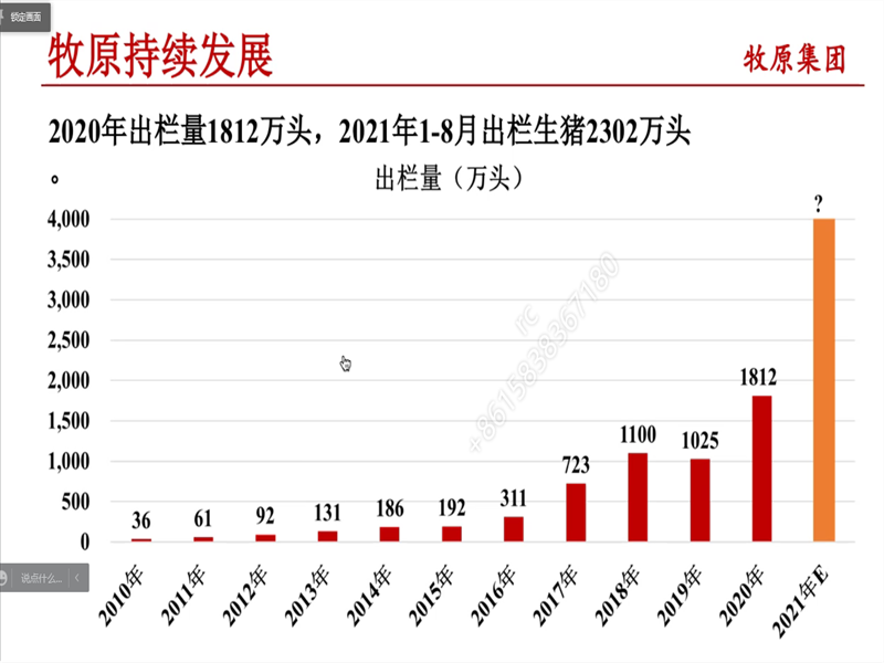 会议开始之前,主讲人以两则短视频展示了牧原集团的员工风貌和机械化养猪方式。随后,会议中首先介绍了公司的基本情况,牧原集团始创于1992年,并与2014年1月上市。主营生猪养殖,2020年出栏1812万头,集团员工14万人,企业规模大,全国24省300余家子公司全面布局,实力强劲。公司的热招岗位主要为销售类(销售管理、行情分析)、人力资源类(人力资源管理、企划宣传)、供应链类(贸易管理、采购管理、物流管理)、养殖管理储备干部、肉食管理储备干部等,底薪8000元,奖金丰厚,薪酬待遇高。