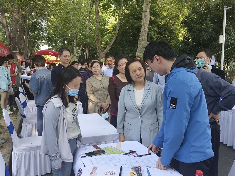 双选会期间,校长尹新明、党委副书记姚毅、副校长边传周等校领导在大学生就业创业指导服务中心副主任张琳及各院领导老师的陪同下莅临现场,询问毕业生就业意向、职业规划以及对当前就业市场的了解,鼓励学生与用人单位建立联系,了解企业需求,寻找合适工作机会。