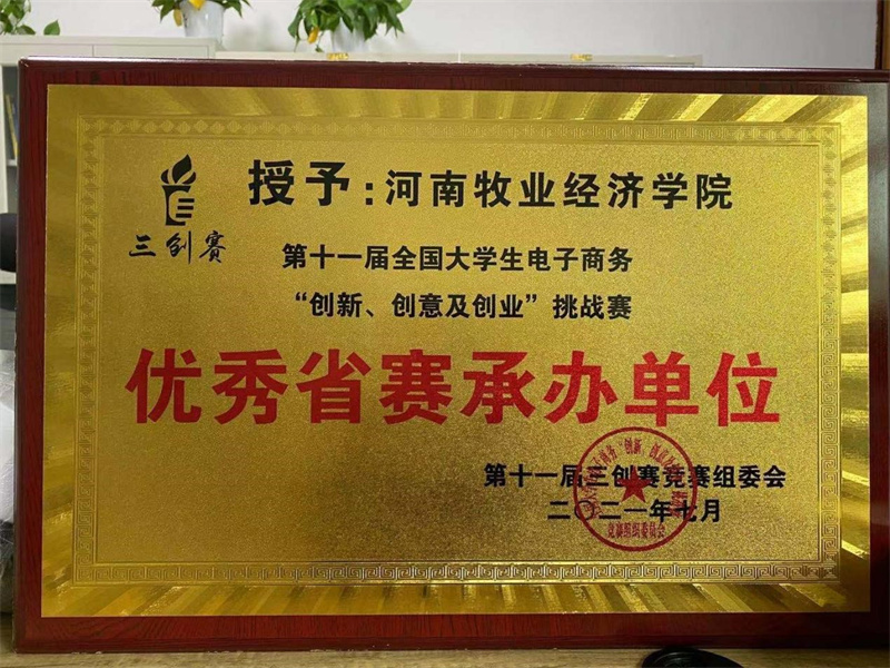 经过分组赛、终极PK赛的激烈角逐,由尹佳慧、谢雪龙、高双庆、姜金宵、张慧芳五位同学组成的五星联盟队参赛的《“夕阳不落”在线教育》项目获得了国赛一等奖;由胡紫藤、张一佳、尹佳琳、王佩芳、李孟祥五位同学组成的雷达队参赛的《钢小秘》项目获得了国赛三等奖;殷猛老师获得国赛优秀指导老师奖;河南牧业经济学院获得了优秀省赛承办单位。