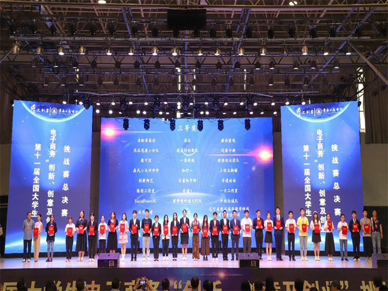 7月21日上午9:00,由全国电子商务产教融合创新联盟主办、云南工商学院承办的第十一届全国大学生电子商务“创新、创意及创业”挑战赛(以下简称“三创赛”)全国总决赛在云南工商学院成功举行。本届总决赛从全国32个分赛区省级赛选拔出185支优秀团队参加总决赛,曹献存教授和殷猛博士带领我校2支代表队参加了本次总决赛,其中曹献存教授应邀作为国赛评委参与了21日的项目评审工作。