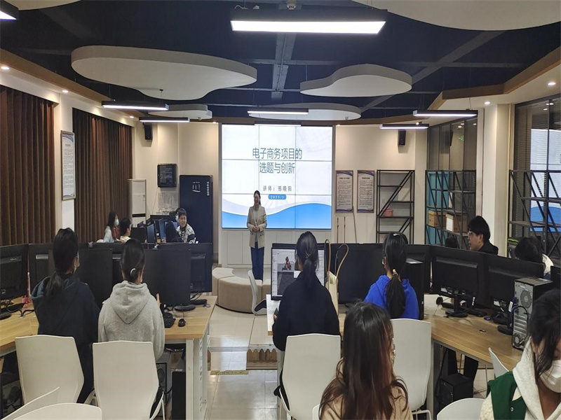 为了提高电商三创赛项目选题的创新性,帮助同学们确定电商三创赛的项目选题,我校电子商务三创赛竞赛组织委员会于2023年3月15日19:00在综合实验楼S104开展了“电子商务三创赛项目选题与创新”的主题培训。此次培训邀请到了大学生就业创业指导服务中心职业发展与就业指导教研室主任邢晓阳老师作为主讲嘉宾,我校电商三创赛参赛团队认真聆听了讲座,并进行了深入的交流和互动。
