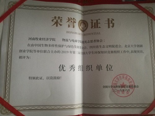 2019年6月被全国大学生环保知识竞赛委员会评为“优秀组织单位”